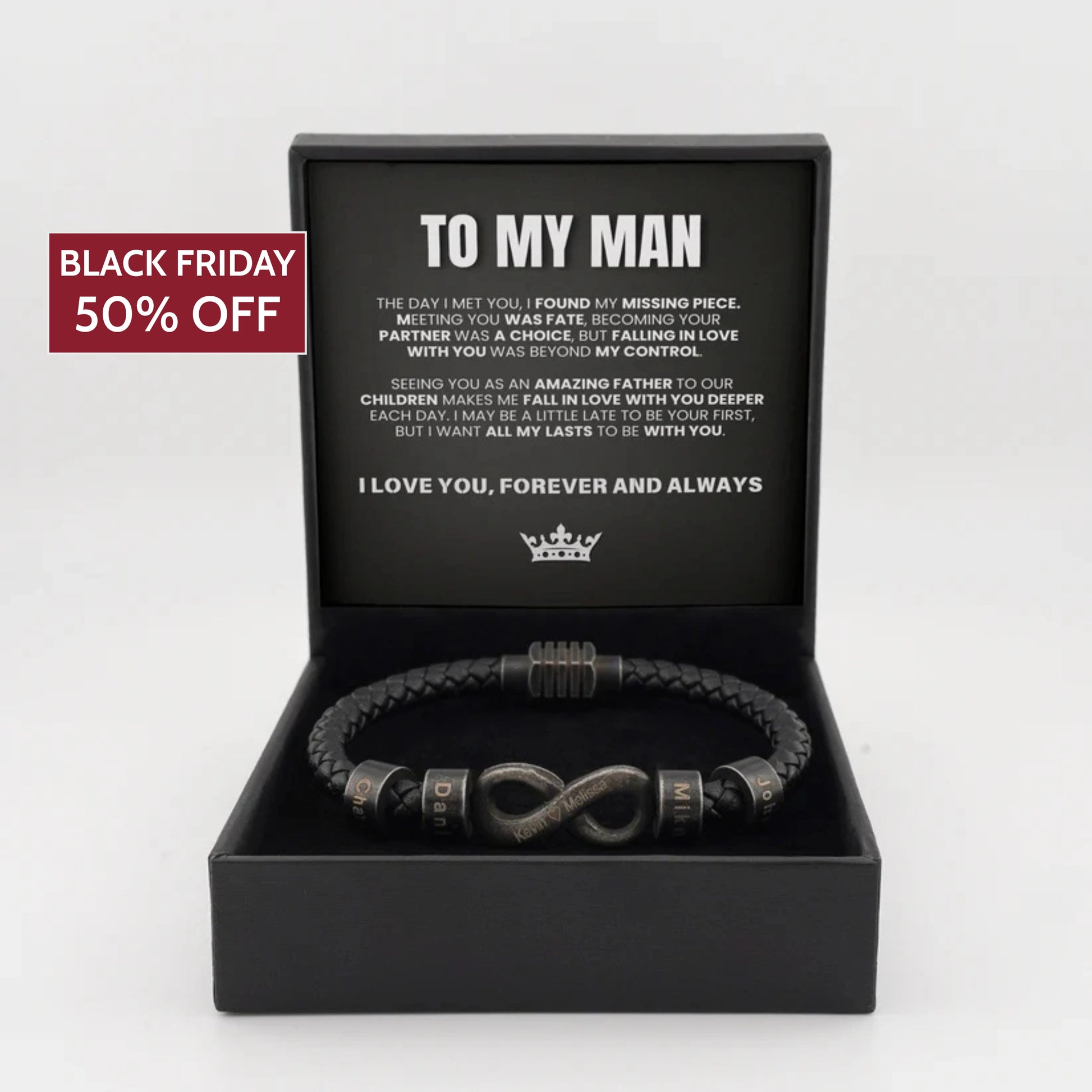 - 1x Personalized Infinity Leather Bracelet – Engraved with the names you choose