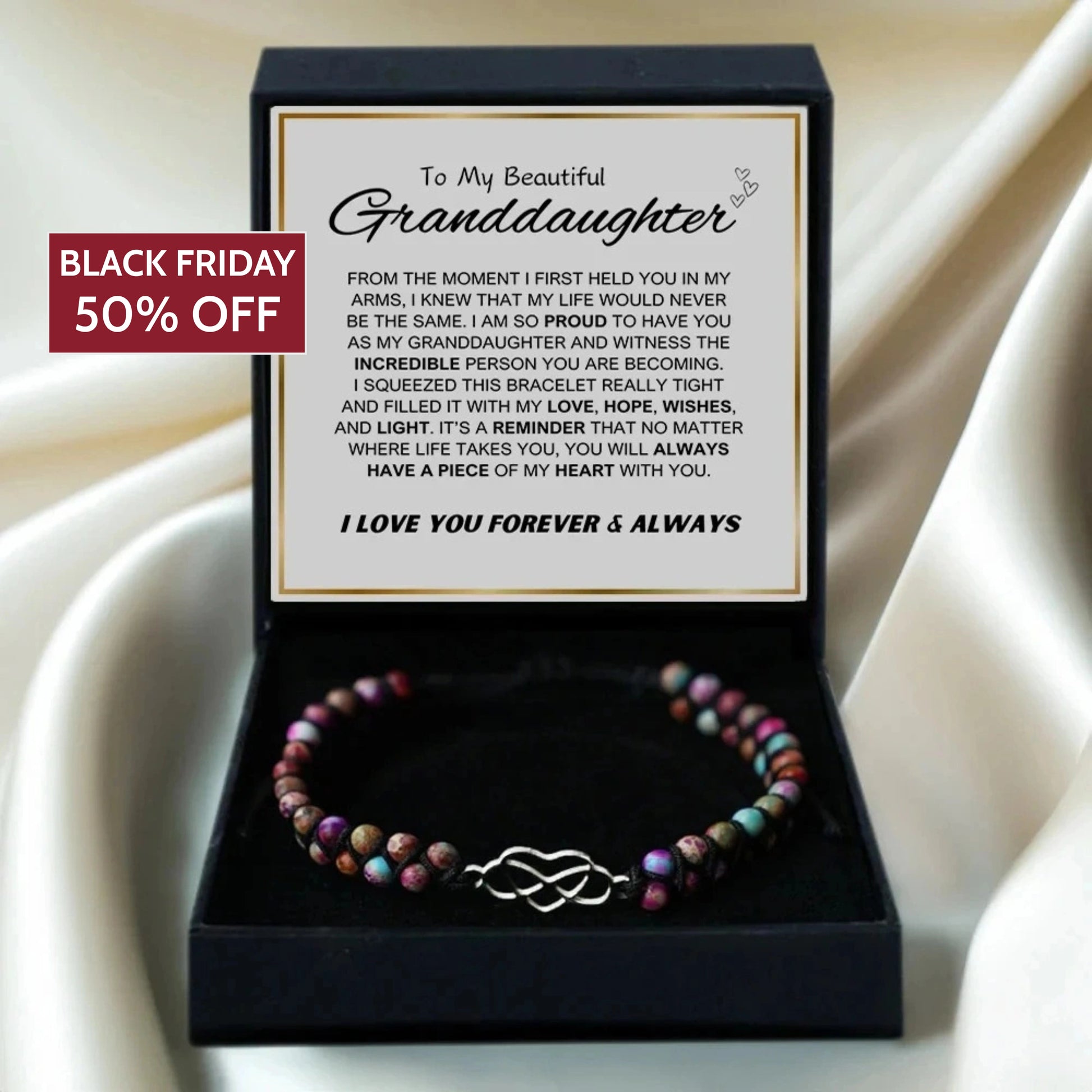 The intertwined heart knot symbolizes the unbreakable bond between you, while each colorful bead carries the love, hope, and light you’ve poured into her life.